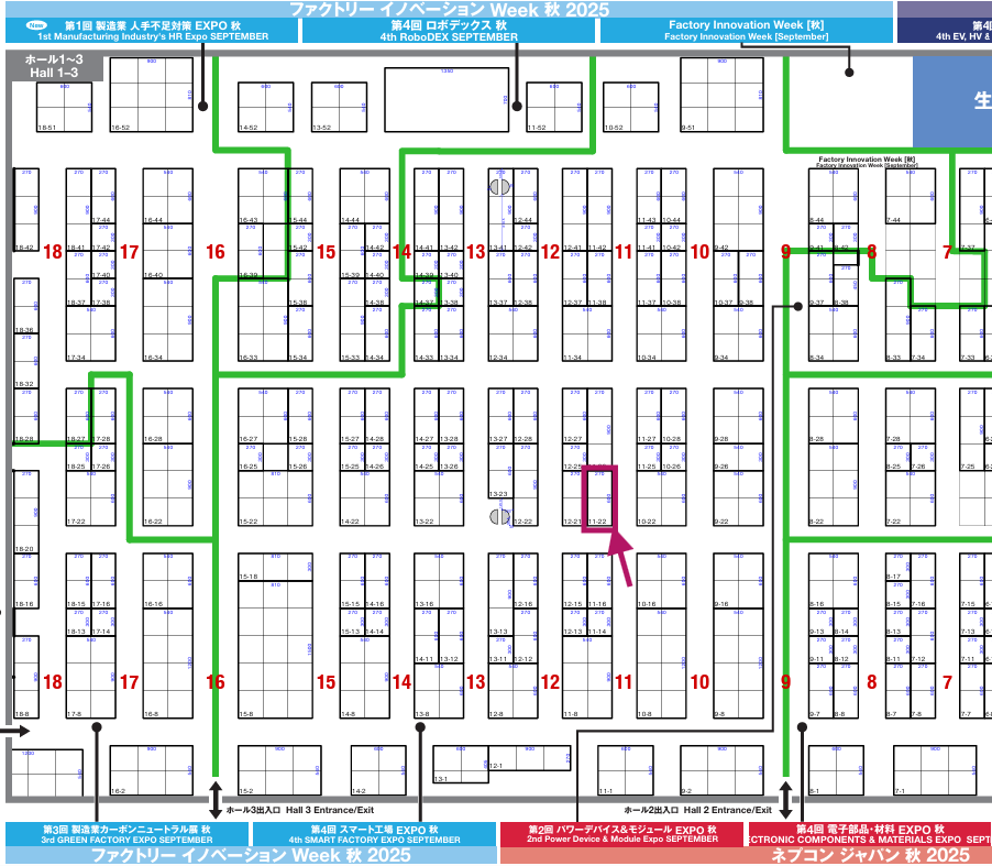 ブース番号:11-22 (ホール2の入口から左手中頃になります)